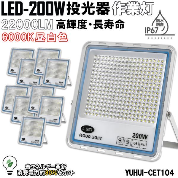 - 安心保証★極薄型 LED投光器 200W 10個セット 広角120° 昼光色6000K 22000LM IP67 作業灯 駐車場灯 防水 屋外 室内 看板灯 庭園 夜間作業