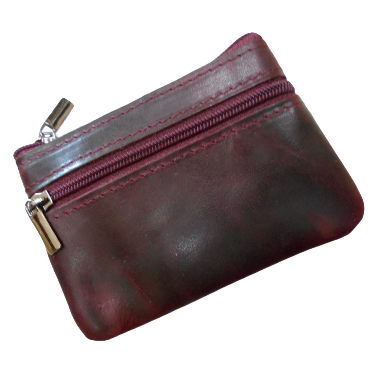 - コインケース レザー調/ダークレッド/ダブルファスナー カード 小銭入れ 男性 女性 レディース メンズ 財布