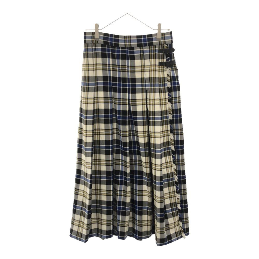 > ニコアンド チェック柄 ミモレ丈 ラップ プリーツスカート L ブルー系 niko and... サイドジップ レディース