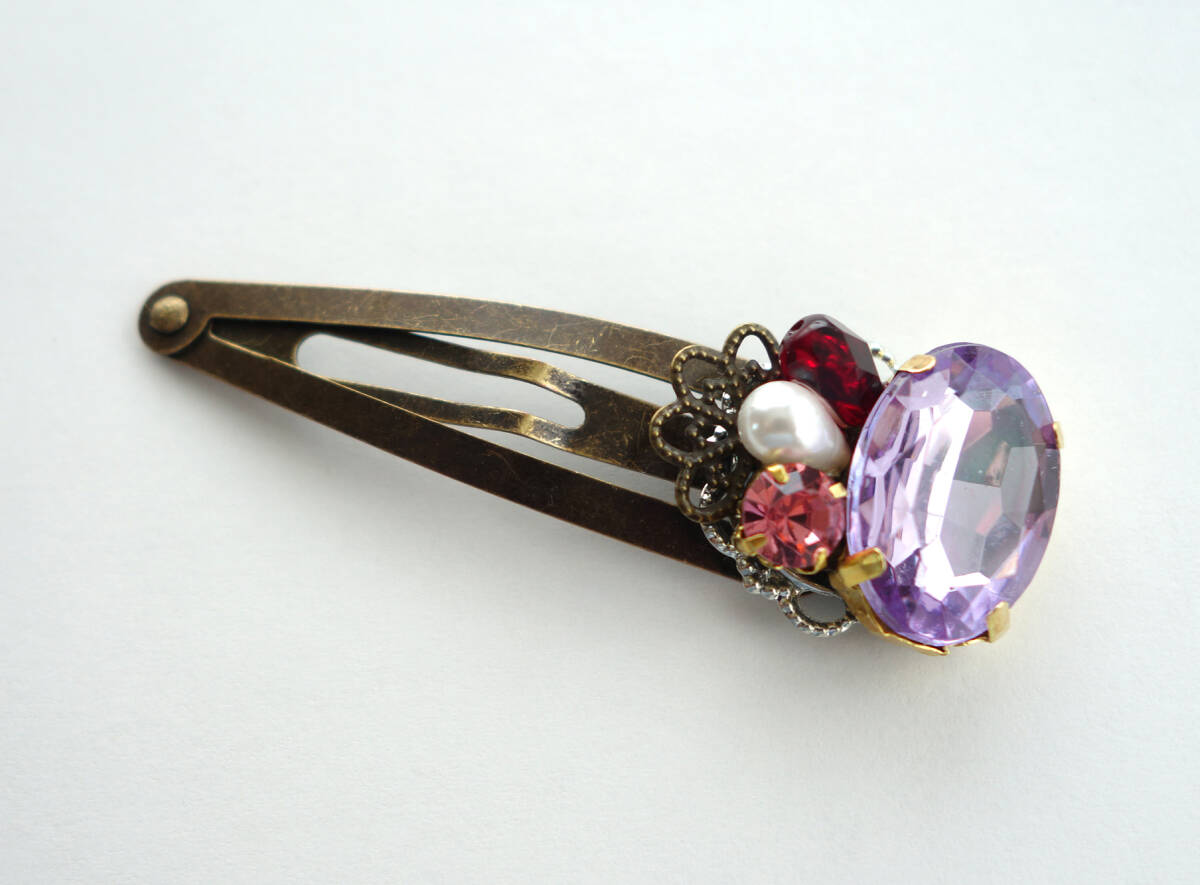 - ★ ハンドメイド キラキラビジュー5㎝パッチンピン ライトパープル オーバル型 ★