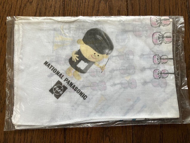 > ナショナル坊やハンカチ 昭和34-41年マーク 横17cm 縦11cm 白 弦楽器 打楽器 未開封 店名有 昭和 当時物 送料無料 底値