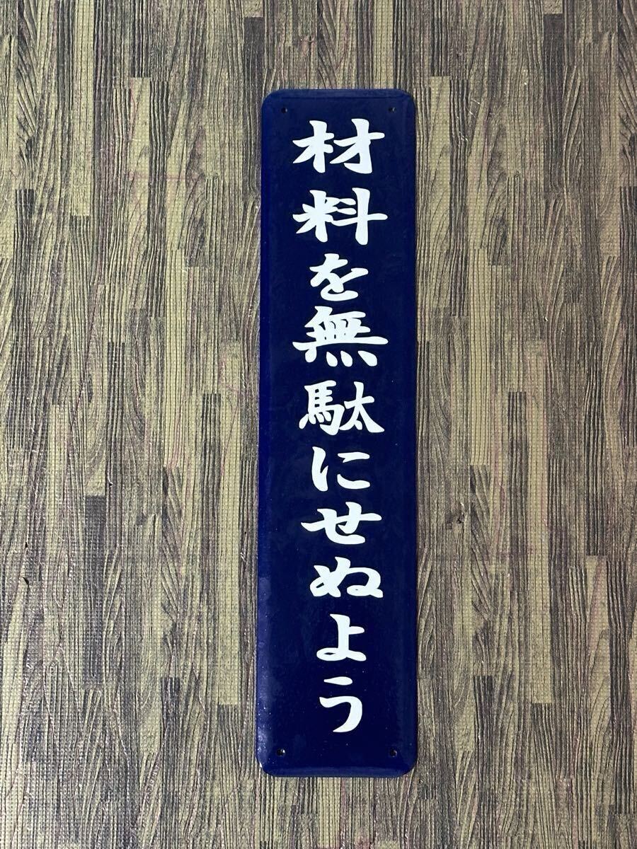 - 材料を無駄にせぬよう ホーロー製 ホーロー看板 看板 昭和レトロ 琺瑯看板 工場などアンティーク インテリア