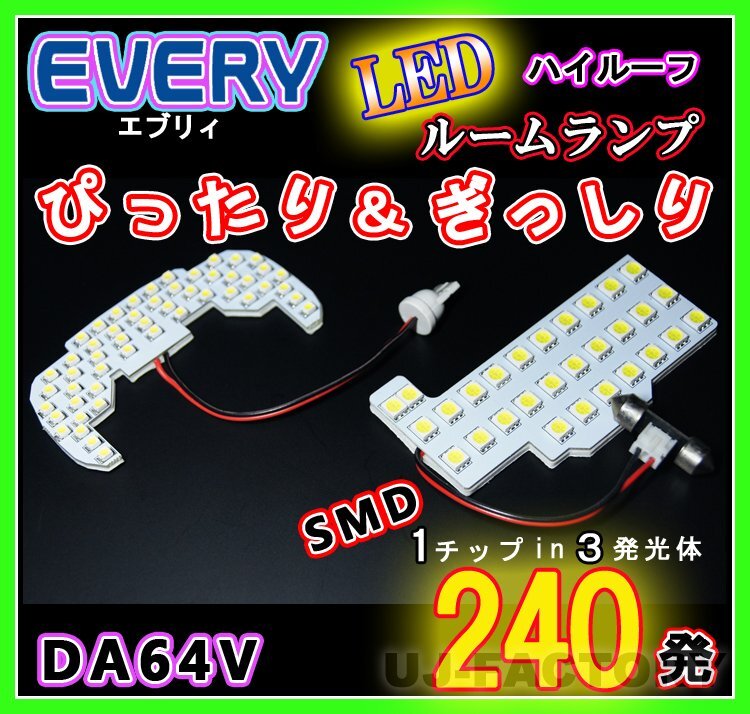 > 【即納】最強の明るさ 240発/1チップ3LED内蔵SMD/ルームランプセット(フロント+セカンド★SUZUKI エブリイバン DA64V ハイルーフ車専用