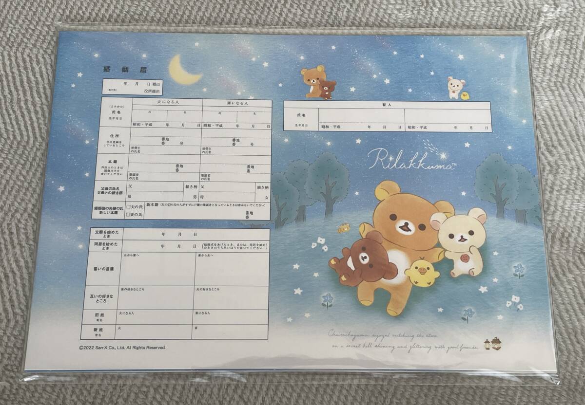 - ●【新品】リラックマ 公式 婚姻届 サンエックス ”チャイロイコグマの星降る夜” san-x