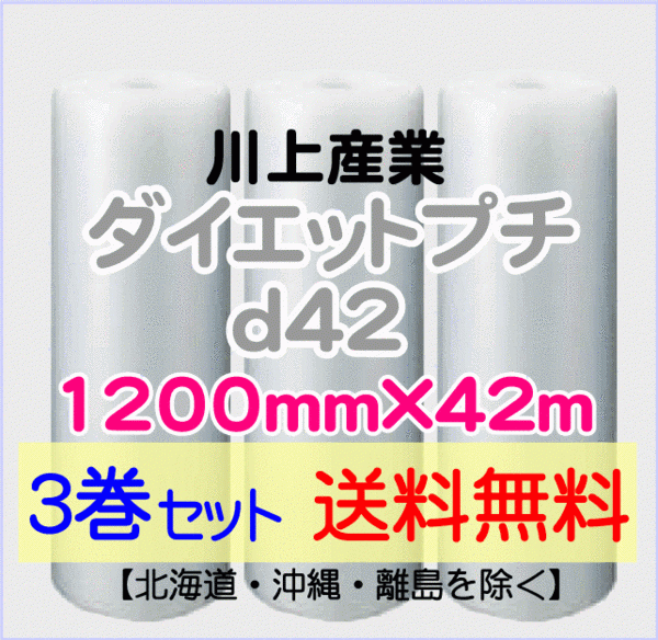 - 【川上産業 直送 3巻set 送料無料】d42 1200mm×42m エアークッション エアパッキン プチプチ エアキャップ 気泡緩衝材