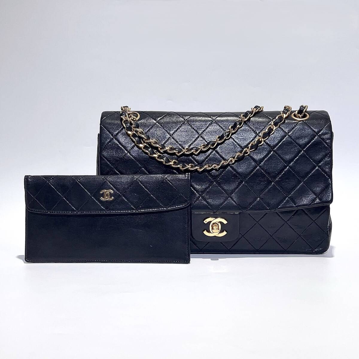 - CHANEL シャネル マトラッセ シングル フラップ Wチェーンショルダーバッグ ポーチ付き ラムスキン GP ブラック レディースバッグ 親子