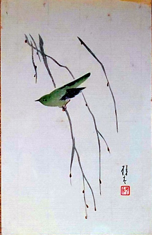 - f24101105〇彩色木版画 梅に鶯 昭和時代〇和本古書古文書