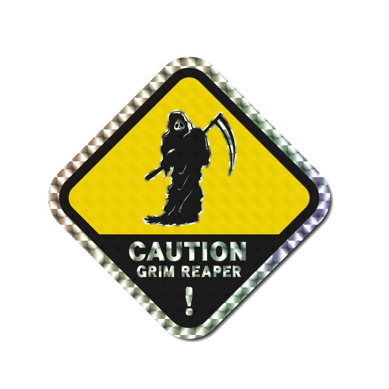 - (ホログラム)おもしろステッカー 死神出没注意 イエロー 4cm
