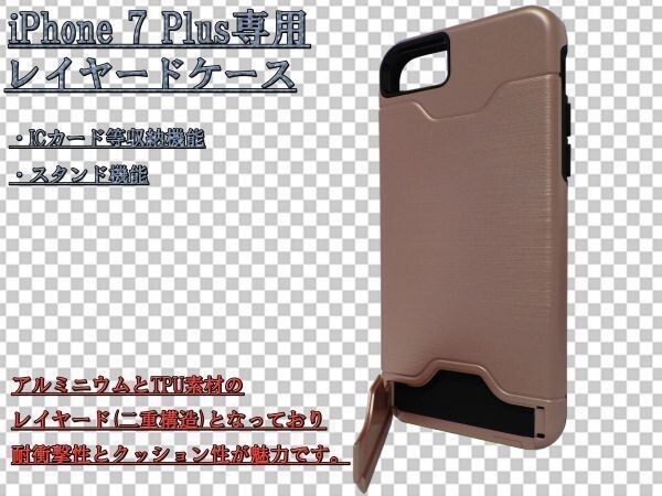 - 送料込 送料無料 ☆彡カード・スタンド機能付き☆彡 アイフォン iPhone 7 Plus 専用 メタルレイヤード スマホ ケース カバー シャンパン