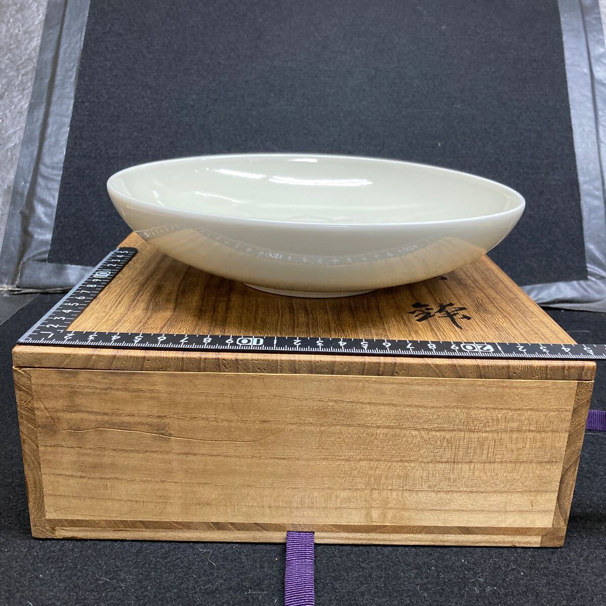 - 富竹窯 名工宮之原謙造(物故作家) 太白磁鉢 共箱付き アンテーク 径23センチ 高さ6センチ 師(板谷波山)