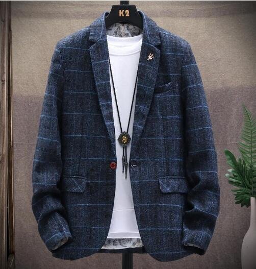 > ジャケット メンズ ブレザージャケット カジュアルスーツ ビジネススーツ 春秋アウター チェック柄 ネイビー XLサイズ DLY583