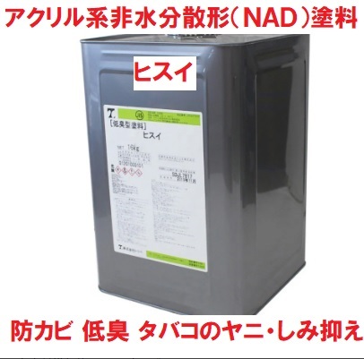 > アクリル系非水分散形(NAD)塗料 ヒスイ 白 16kg 艶有り つやあり トウペ 調色、他原色も相談可 防カビ 低臭
