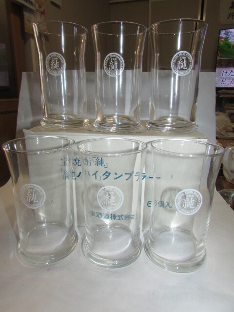- 即決商品(酒屋・蔵出し)(レトロな宝焼酎純ハイ・タンブラ-グラス・6客)NO1 ・昭和レトロ・ 未使用