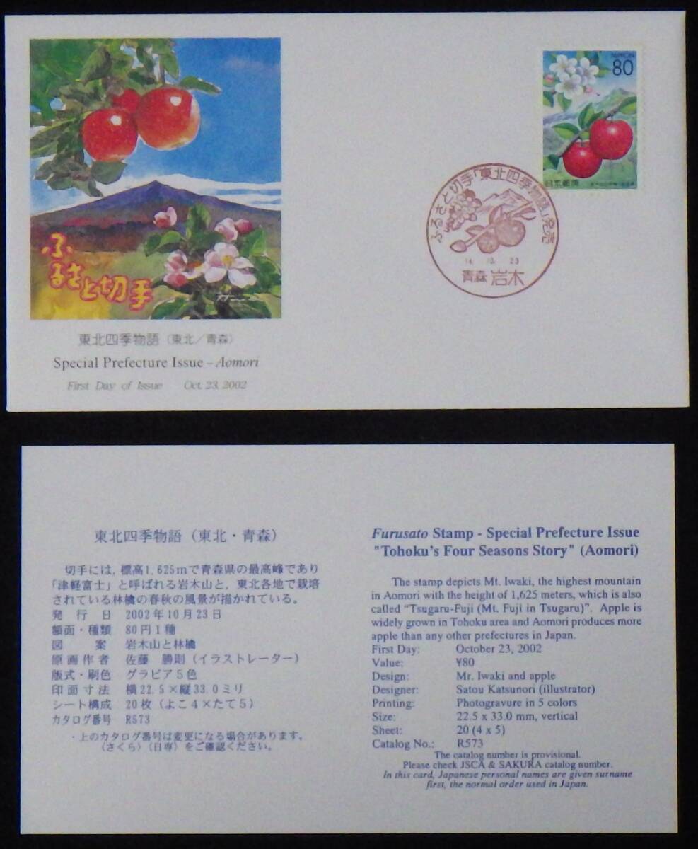 - 初日カバー ふるさと切手 東北四季物語 青森 解説書付 80円1種1枚(消印有) 2002年 14.10.23 青森岩木 ランクA