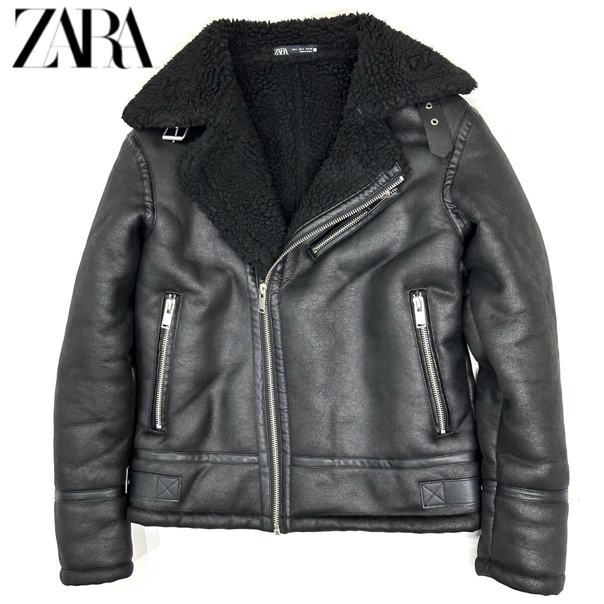 - ZARA ザラ フェイク ムートン ダブル ライダース ジャケット(38 S)ブラック 黒 メンズ アウター