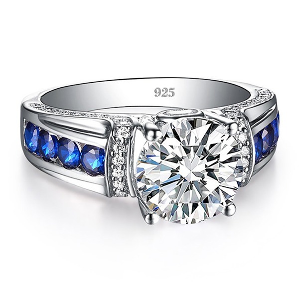 【証明書付き】女性用2ctモアッサナイトリング、シルバー925、サファイア