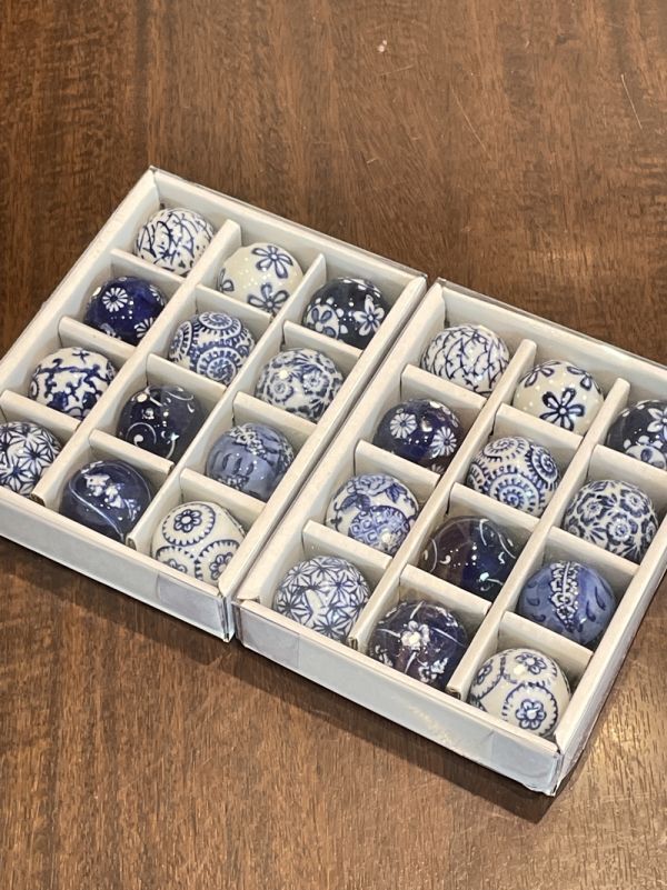 - 浮き球 浮き玉 青花 陶器製 小 12個セット×2点 水盤 蓮 水鉢 飾り 置物 玉 メダカ鉢 金魚鉢 ブルー 青 インテリア 雑貨