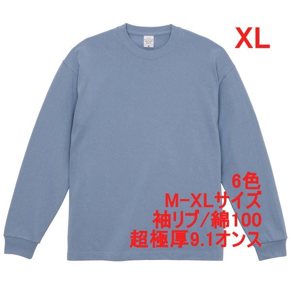 - 長袖 Tシャツ XL アシッド ブルー ロンT カットソー 極厚 9オンス 綿100 無地T 無地 袖リブ ビッグシルエット A2073 LL 2L 水色 442201