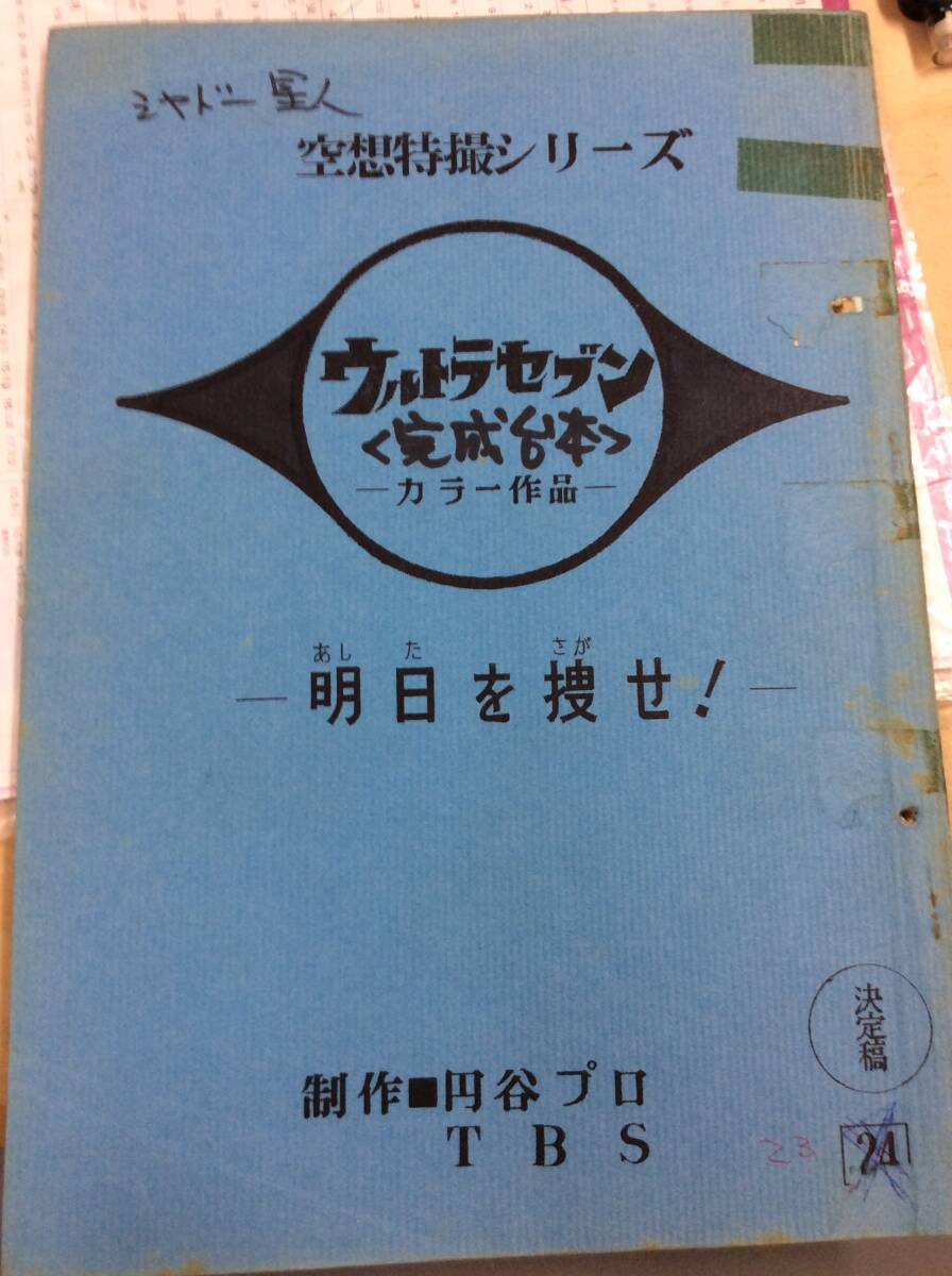 - 台本 ウルトラセブン 明日を捜せ! 脚本 上原正三 監督 野長瀬三摩地 当時物 書き込みあり