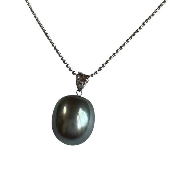 - 14WG ホワイトゴールド 南洋タヒチ本真珠 ドロップ形パール 1粒 デザインペンダントトップ チェーン付 14wgny-pe1 AFP