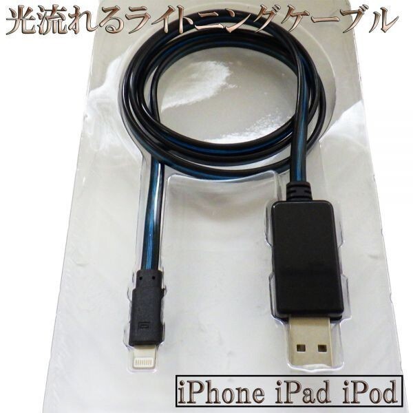 - 【80cm 黒/青】 送料無料 送料込 iPhone7 iPhone7 iphone6 Plus iPhone5 iPad Air iPod 光る 流れるライトニングUSBケーブル