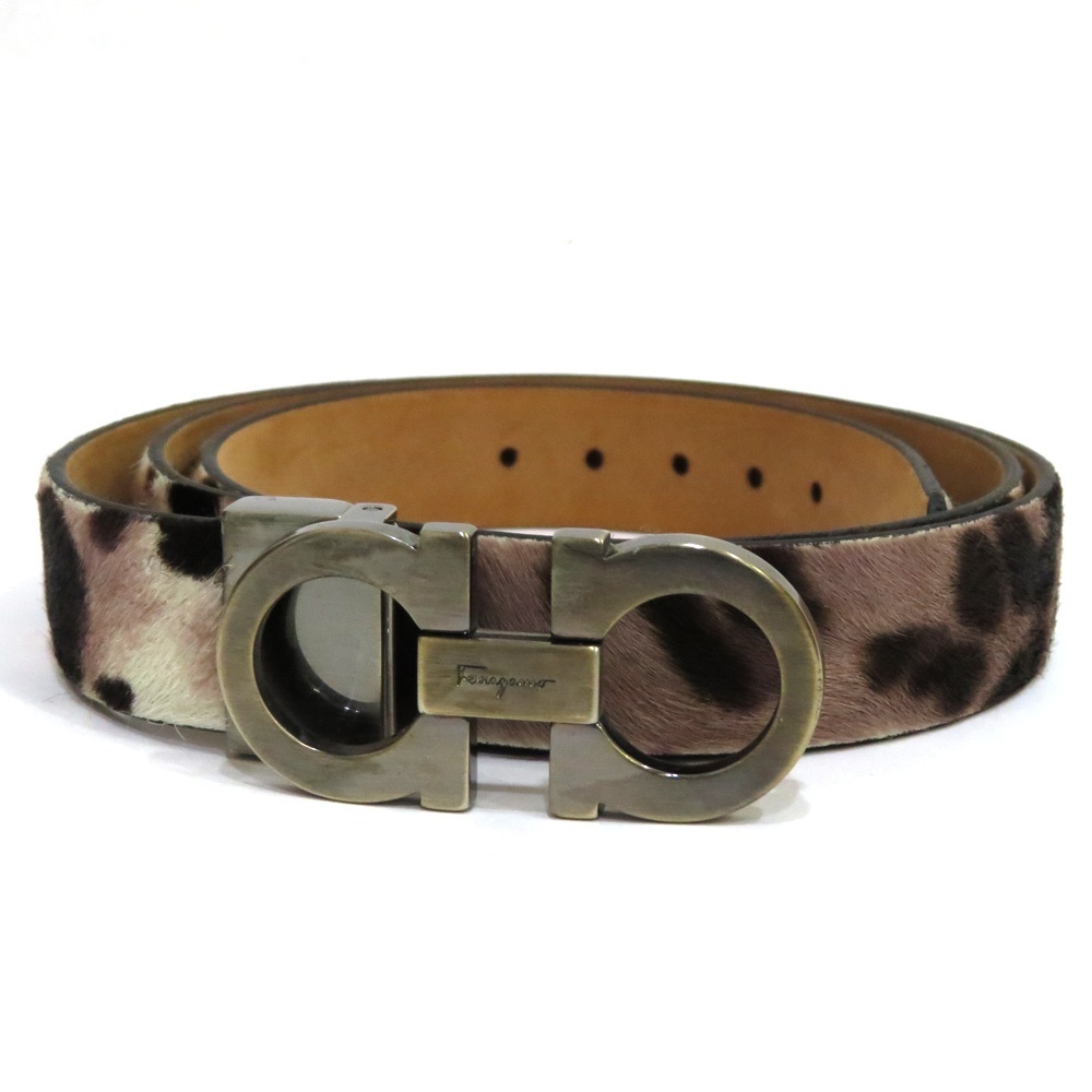 - 中古 サルヴァトーレフェラガモ 小物 レオパード ベルト Aランク ハラコ×レザー ガンチーニ【送料無料】【名谷店】