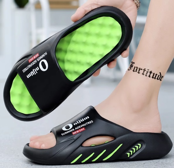 - 新作 オシャレ 配色 スリッパ メンズ ビーチ スリッポン スポーツ リゾートサンダル 防滑 通気 マッサージ足底 黒緑/26cm