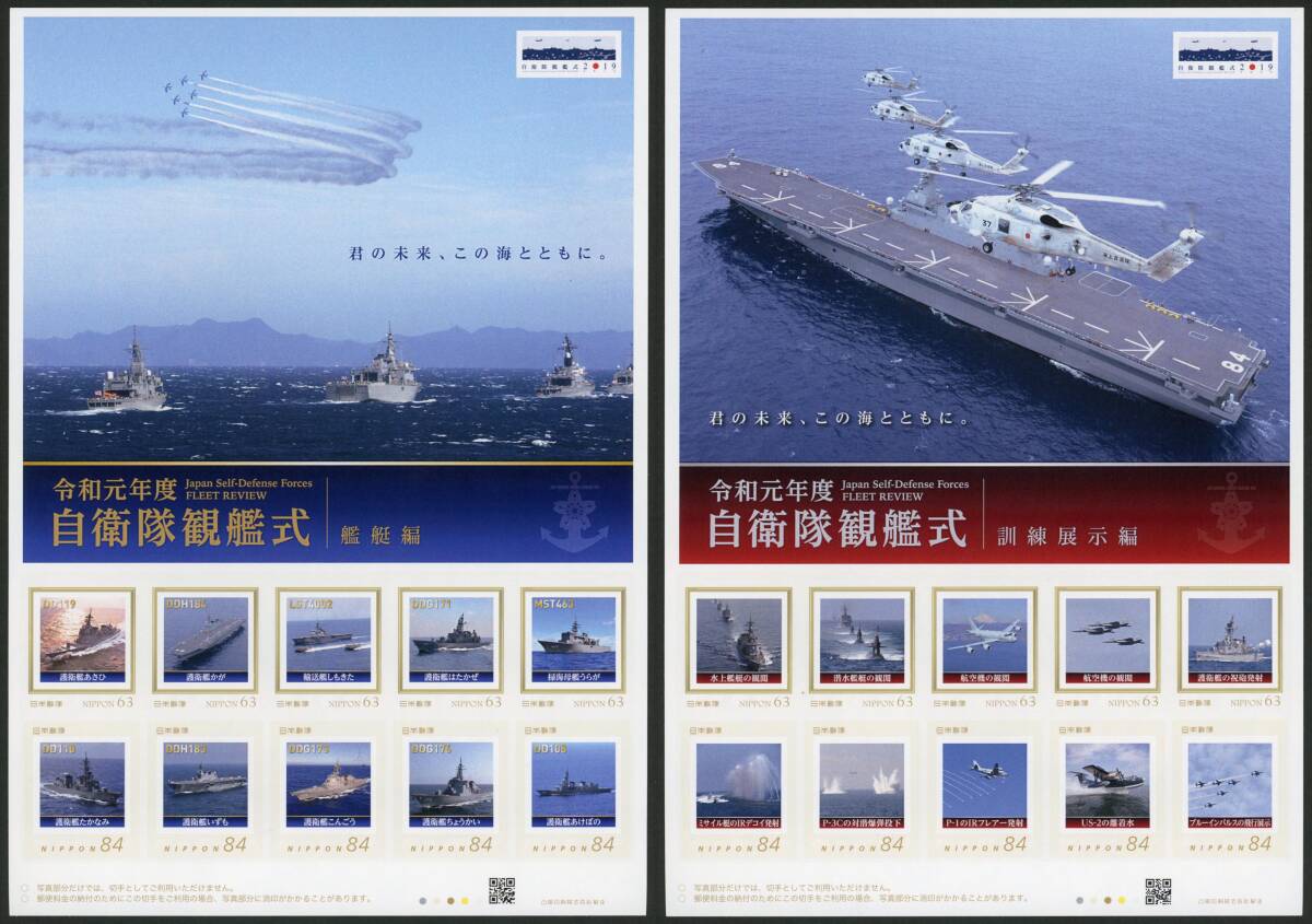 ●令和元年度 自衛隊観艦式 艦艇編・訓練展示編セット のフレーム切手(計2シート)です。美品