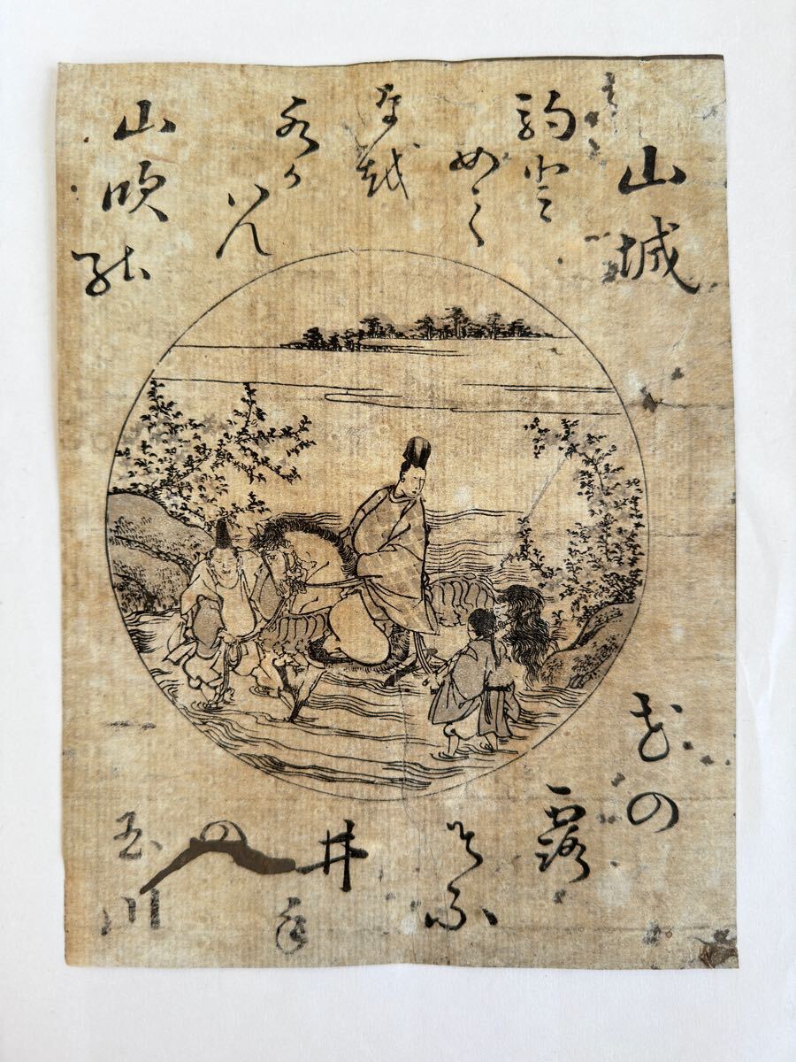 - ②真作/江戸期 本物浮世絵木版画「山城」名所絵 墨摺 裏打ち サイズ約17.5x23.5cm