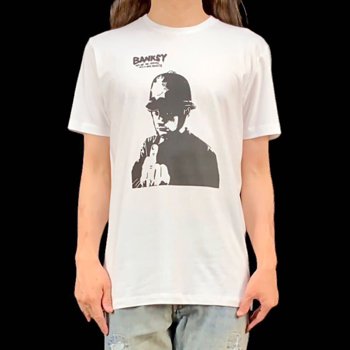 - 新品 BANKSY バンクシー POLICE ポリス FUCK YOU 中指 挑発 ジェスチャー ステンシル グラフィティ アート Tシャツ ユニセックス Mサイズ