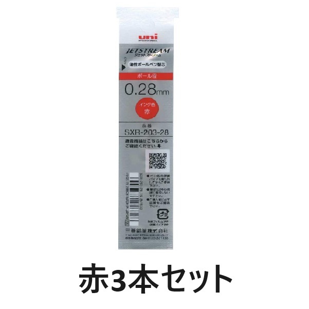 - 三菱鉛筆 uni ジェットストリーム 油性ボールペン替え芯 0.28mm 赤 3本セット売り SXR-203-28