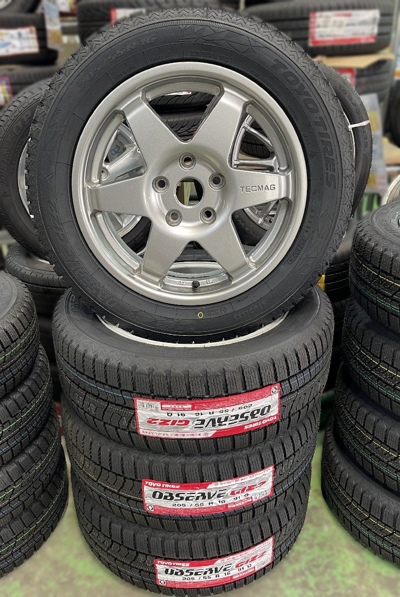 - ●VWゴルフ 5 6 アウディA3 中古 社外アルミ 16インチ+新品 トーヨー オブザーブ GIZ2 205/55R16 スタッドレスタイヤ 4本セット