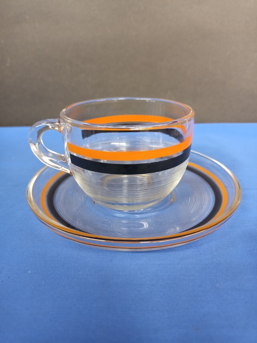 - 昭和レトロ■耐熱ガラス カップ&ソーサー オレンジ 食器