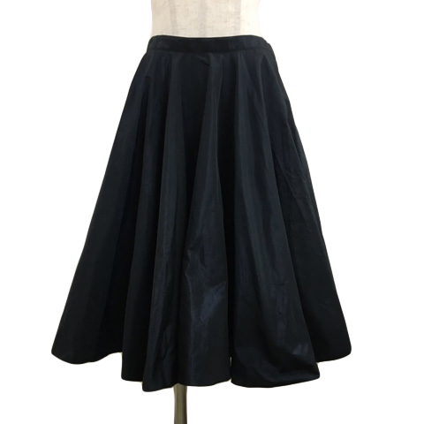 > デュアルヴュー DUAL VIEW スカート フレア ひざ丈 光沢 無地 40 紺 黒 ネイビー ブラック レディース