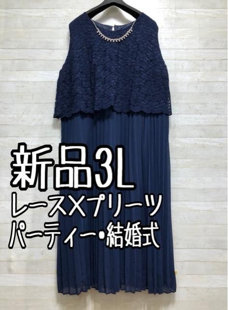 - 新品☆3L紺系♪レース×プリーツ♪ロングワンピ♪結婚式・パーティ〇p924