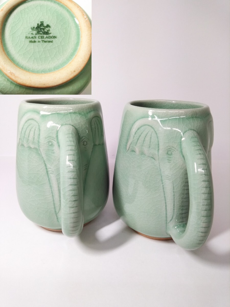 - CELADON タイ マグカップ 2客 セット ゾウ 象 青磁 アジア 在印 (検索) 工芸品 酒器 酒杯 杯 ビール グラス ジョッキ 美術 貫入 アジアン
