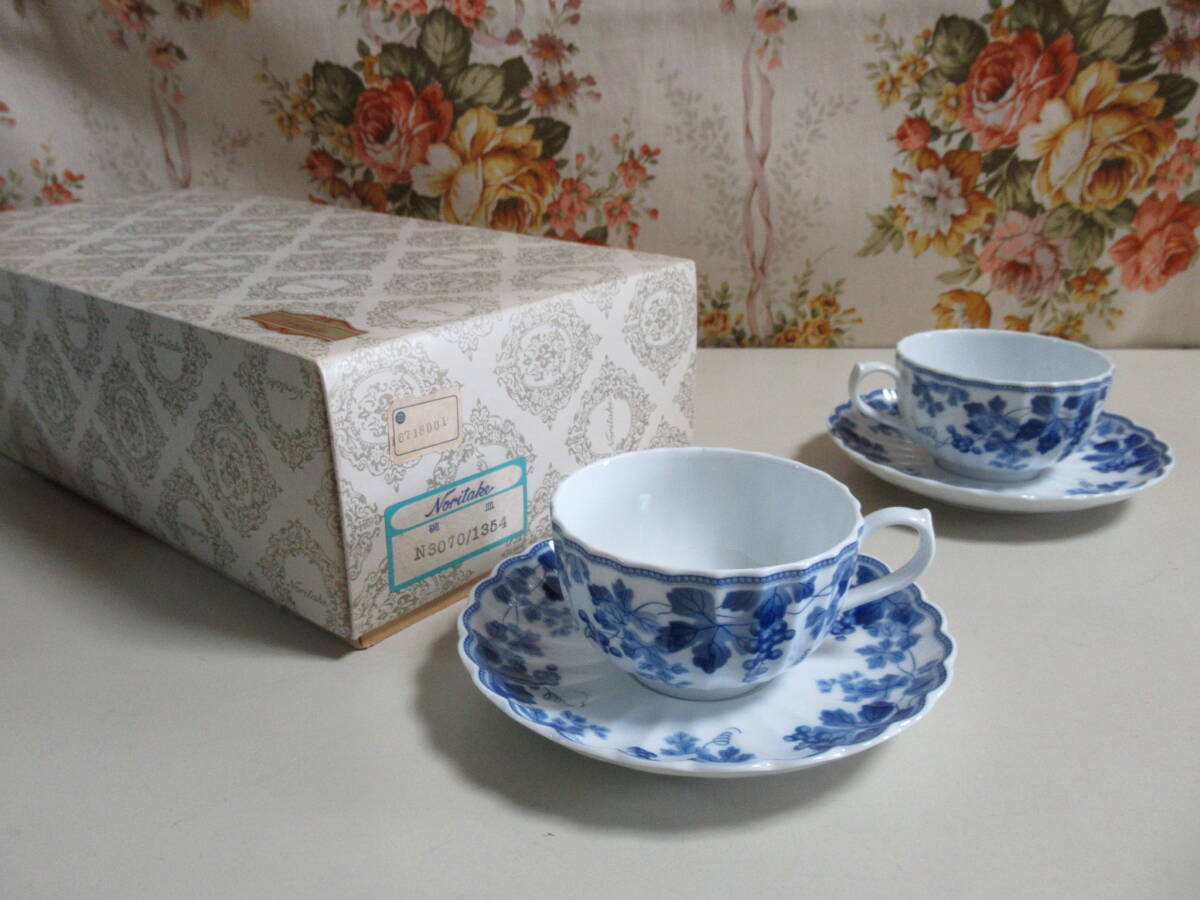 > R6 10★ノリタケ 『ぶどう柄 ブルー系』カップ&ソーサー6客セット N3070/1354 未使用箱入