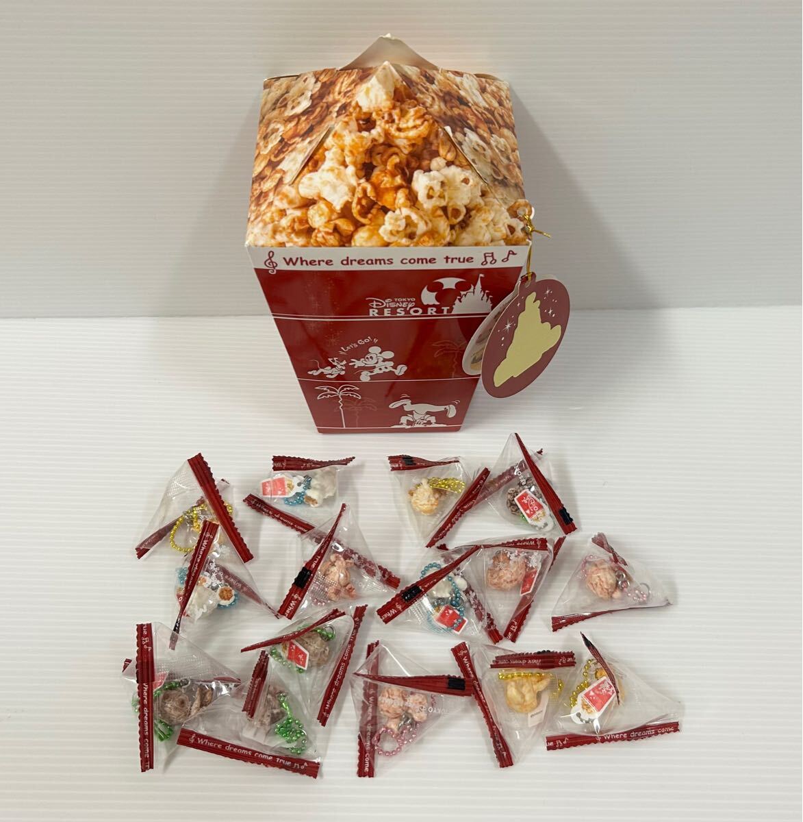 - ディズニー TDR ポップコーン キーチェーン セット ミッキー ミニー スティッチ スクランプ マリー チェシャ猫 パークフード キーホルダー