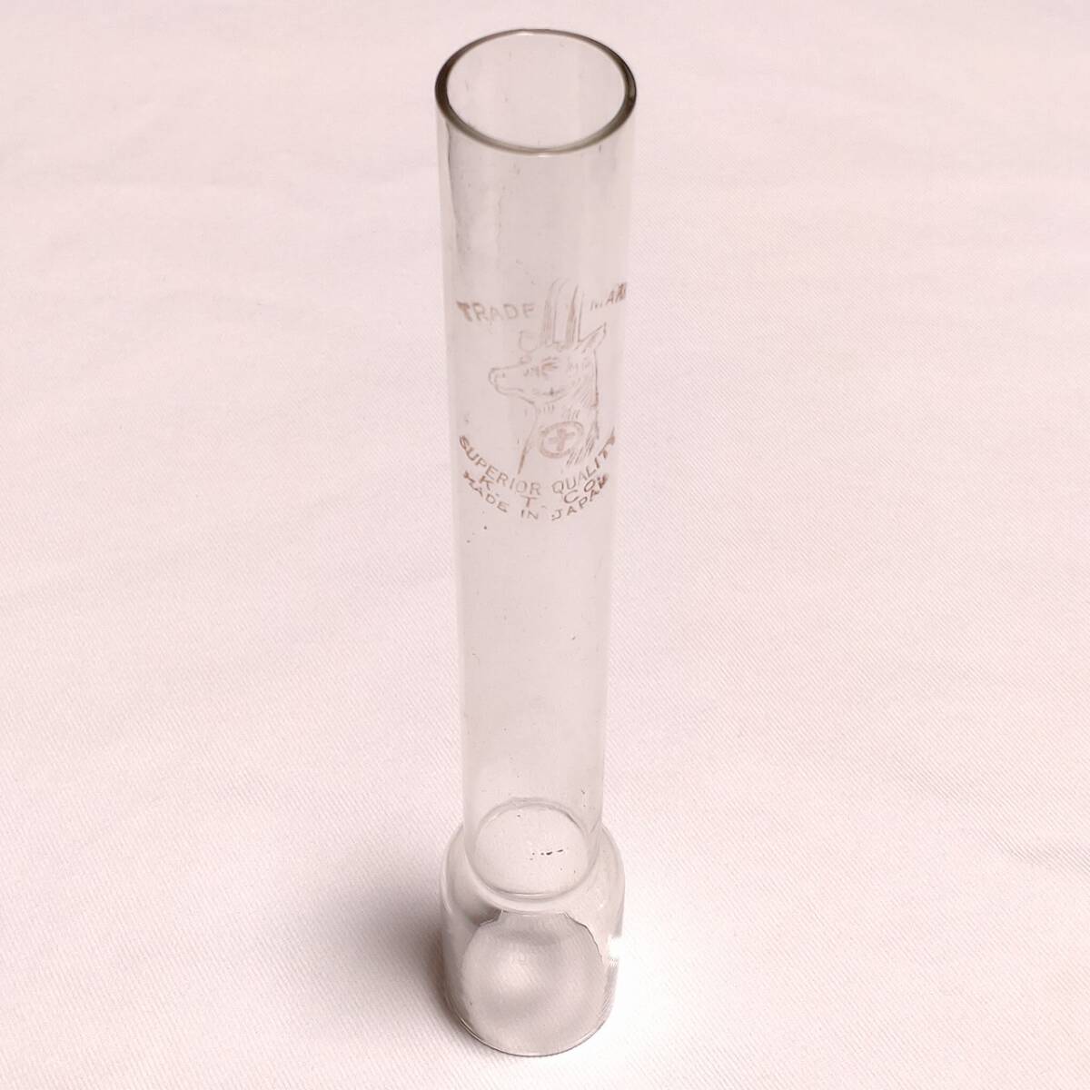 - オイルランプのホヤ 筒型 硝子製 SUPERIOR QUALITY K.T. Co 気泡硝子 レトロ 直径38㎜ 高さ235㎜ 口径(内径)上約24㎜ 下約35㎜ 【3543】