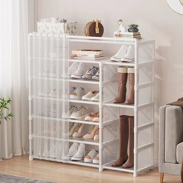 - LRM4473★シューズラック 靴ラック 玄関収納ラック 大容量 小物置き 鍵置き カーテン付き 防塵 臭い遮断 7段階 最大25~30足収納