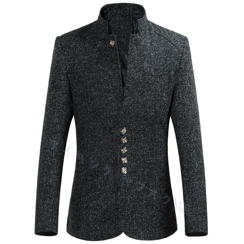 > ☆新品メンズテーラードジャケット ビジネススーツ ブレザー シンプル 立て襟 カジュアルスーツ アウター 紳士 通勤 ブラック M~6XL