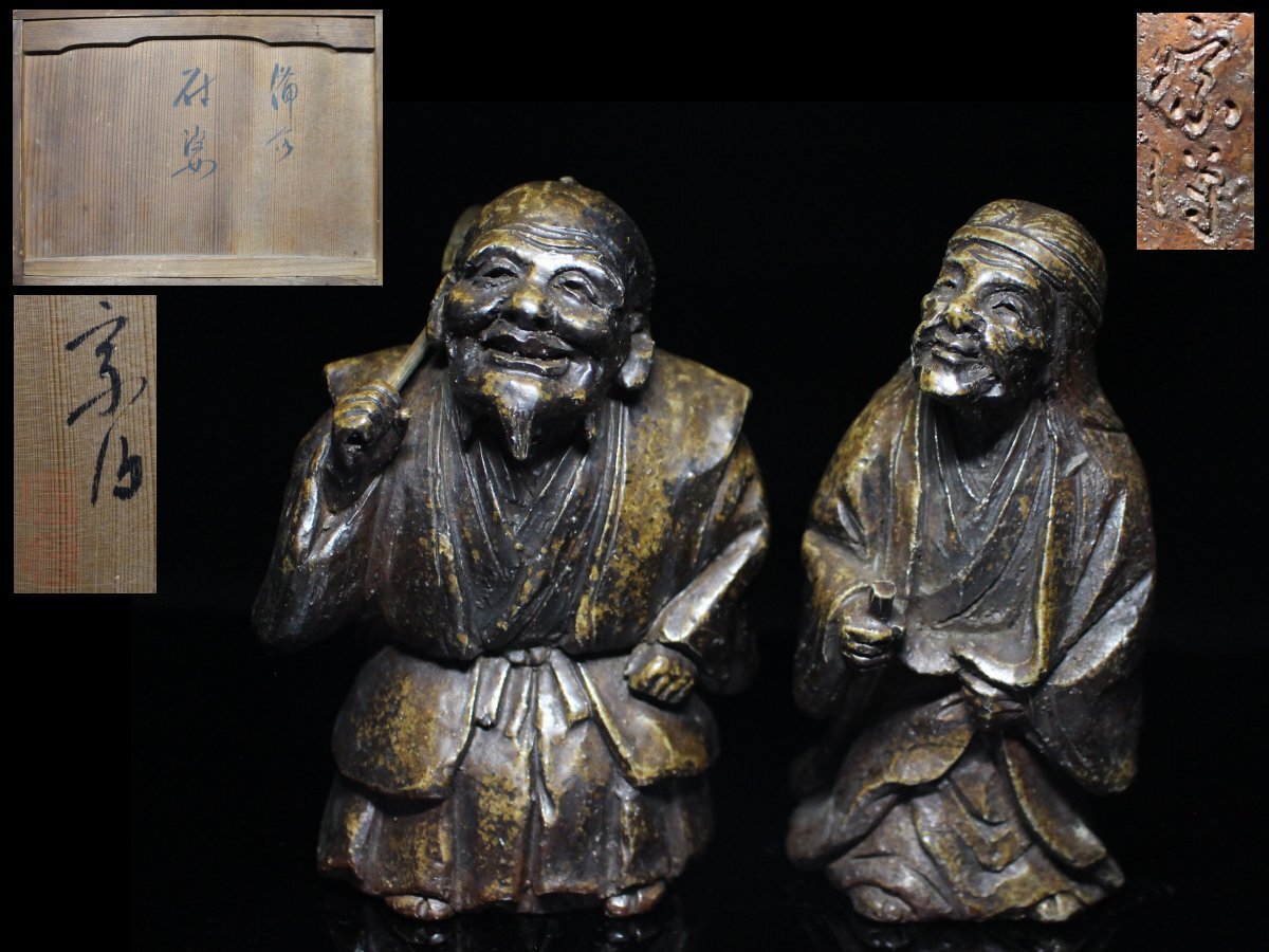 - ◆備前・木村宗得・爺婆・高砂・置物・縁起物・夫婦円満・床置・共箱・検 木村玉舟◆a4147h