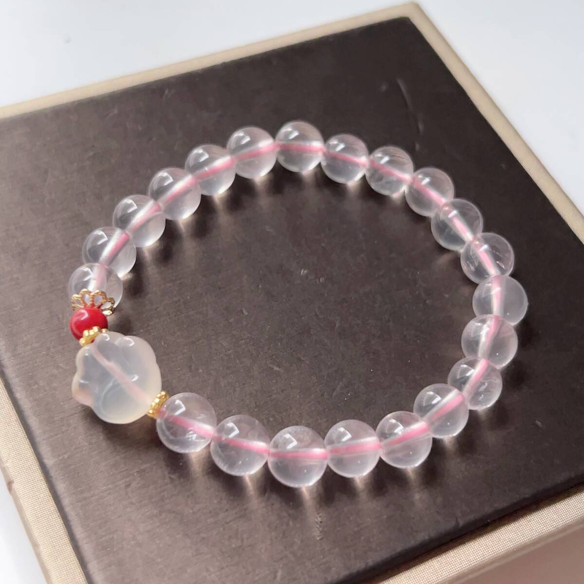 > ◇高品質 ◇ローズクォーツ(紅水晶)スター入り+瑪瑙1粒+赤珊瑚1粒◇ブレスレット◇パワーストーン◇天然石◇巾着袋付き◇プレゼントにも