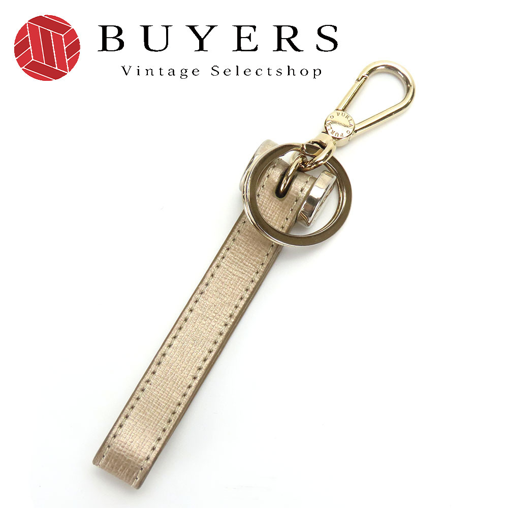 - 中古 フルラ キーリング レザー メタル ゴールド系 ゴールド金具 キーホルダー 小物 チャーム レディース 女性