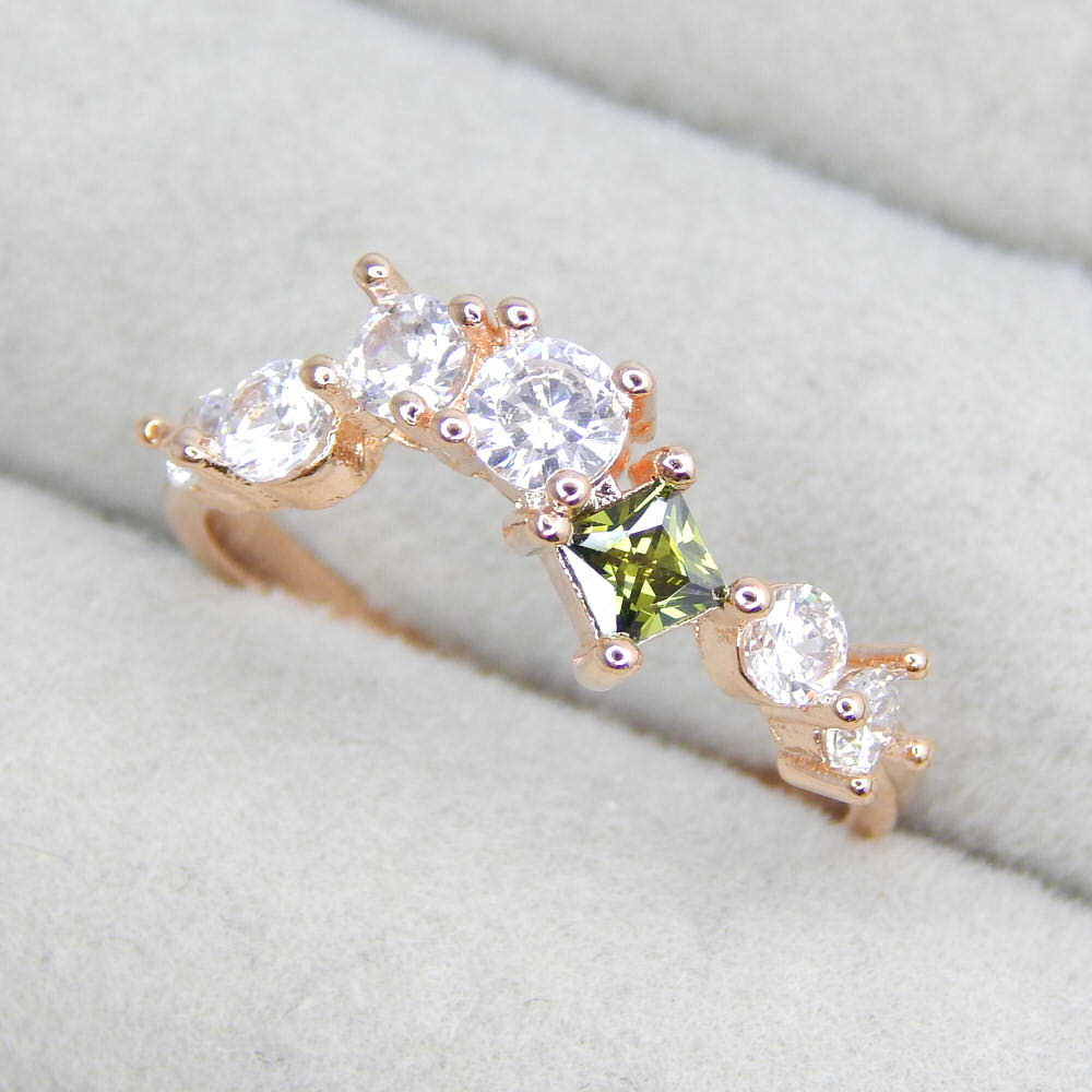 > 残り1点★新品★送料無料 11号 7連CZエメラルドダイヤモンドリング レディースアクセサリー ピンクゴールド シルバー925 ジルコニア 限定