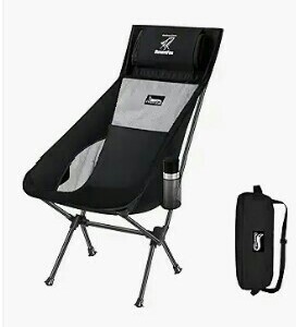 - アウトドアチェア カラー・ブラック 軽量コンパクト折りたたみ式 収納バッグ付 ヘッドレスト(枕)型 ドリンクホルダー付 対荷重150Kg