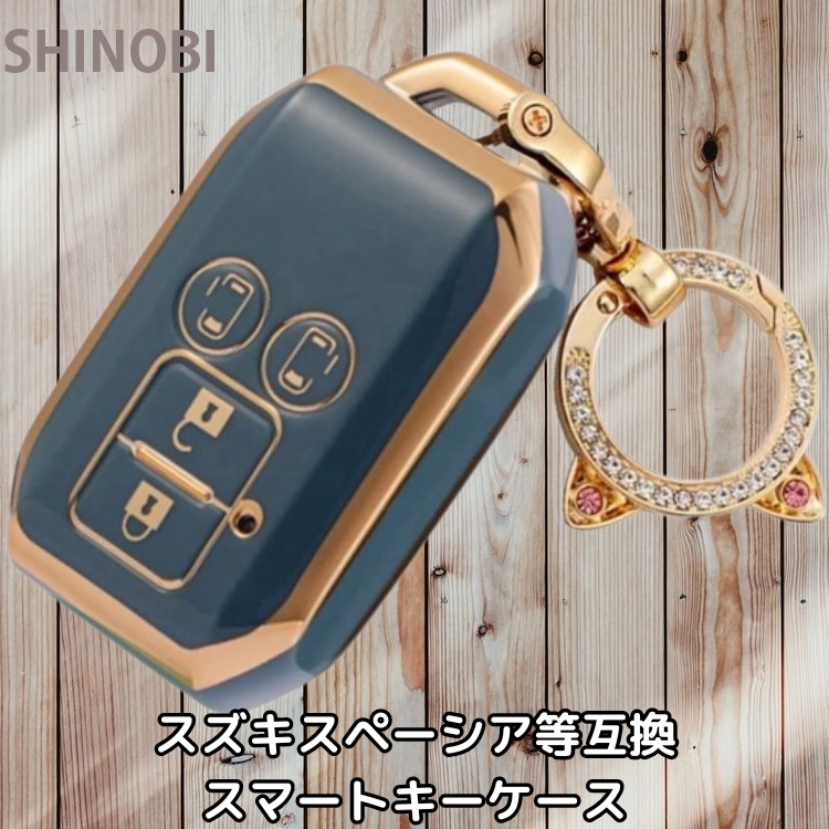 - スズキ suzuki 新型スペーシア 互換 スマートキーケース キーホルダー付き スペーシアカスタム ソリオ フレアワゴン等にも ブルー1