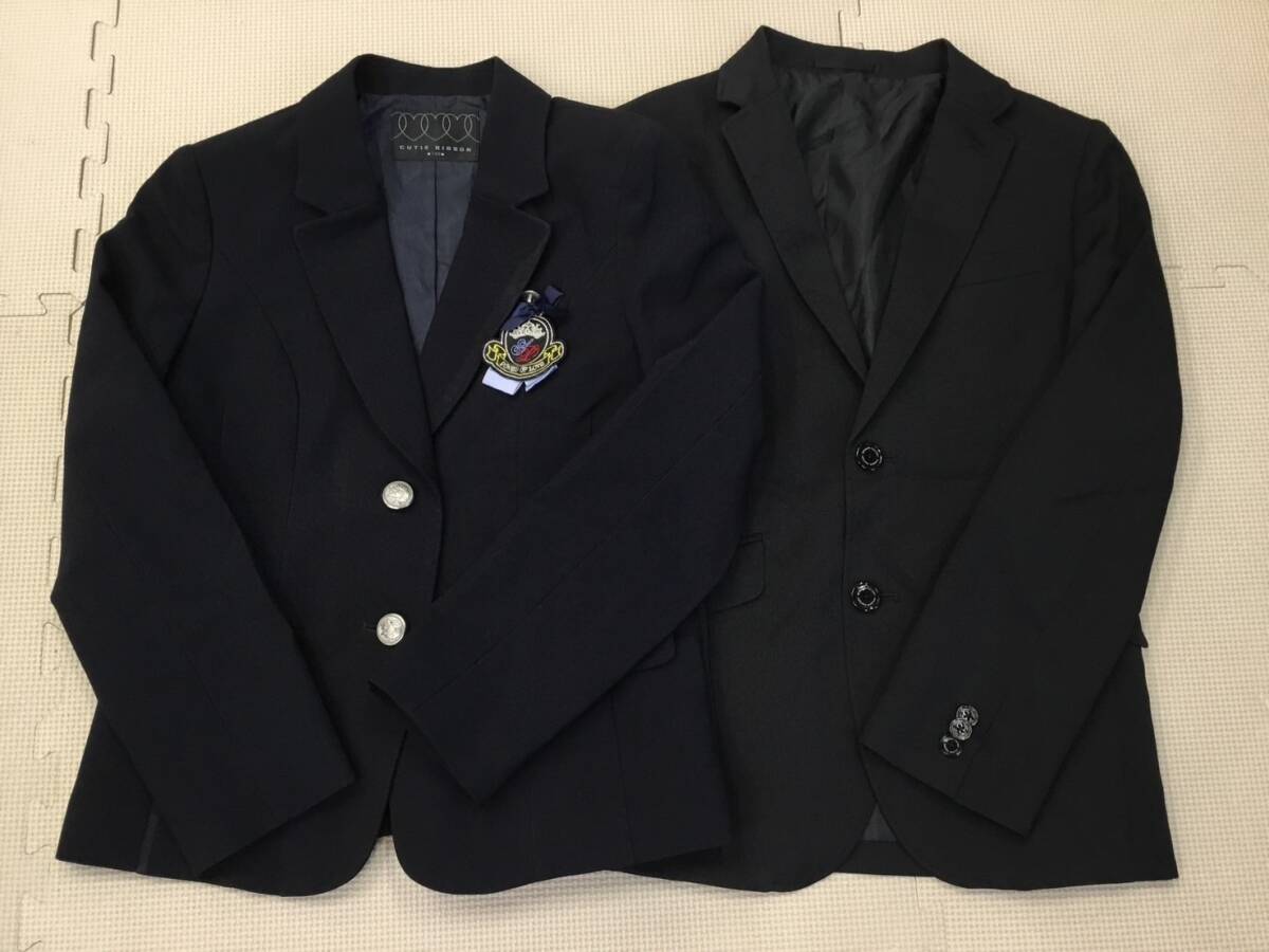 - S317 中古品【CUTIE RIBBON/WANDER FACTORY】ジュニア ジャケット サイズ 150cm 2点/紺/黒/ガールズ/ボーイズ/通学/フォーマル