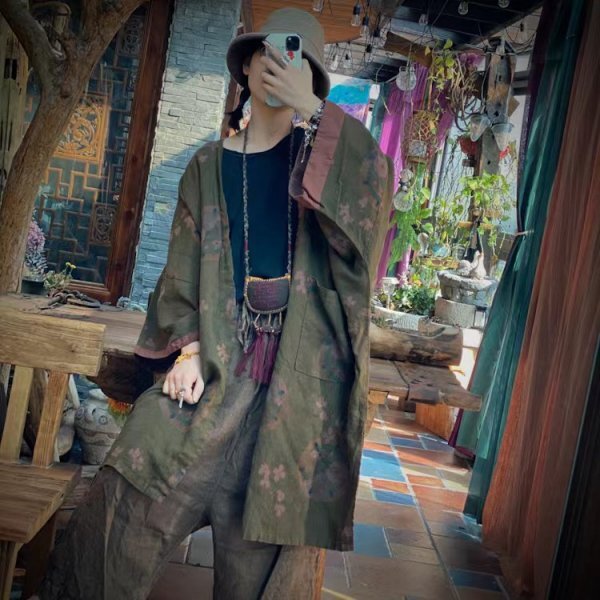 - lgn 2410 ロングカーディガン 羽織物 半纏 襤褸 麻100% アンティーク風 洋服ミックス ロマンファッション ポップ 楽ちん1913-2