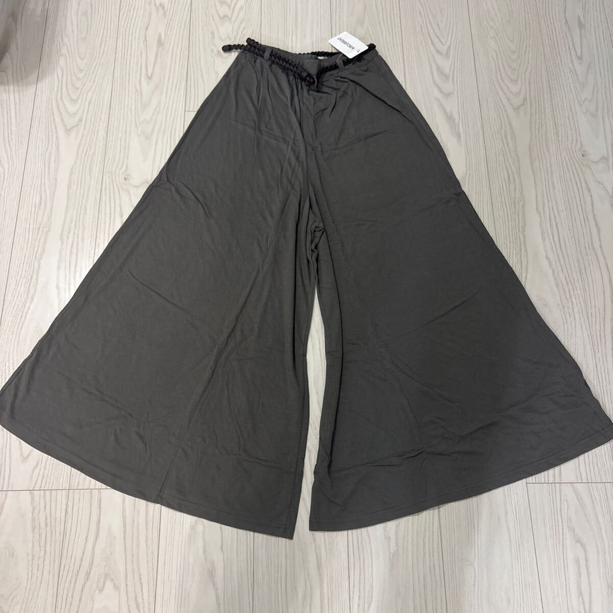 - 未使用,ベルト付き●レディース ワイド パンツ/Mサイズ/ウエスト 64~70/グレー/イージー/長 ズボン/ずぼん/部屋着/ルームウェア★2221-5